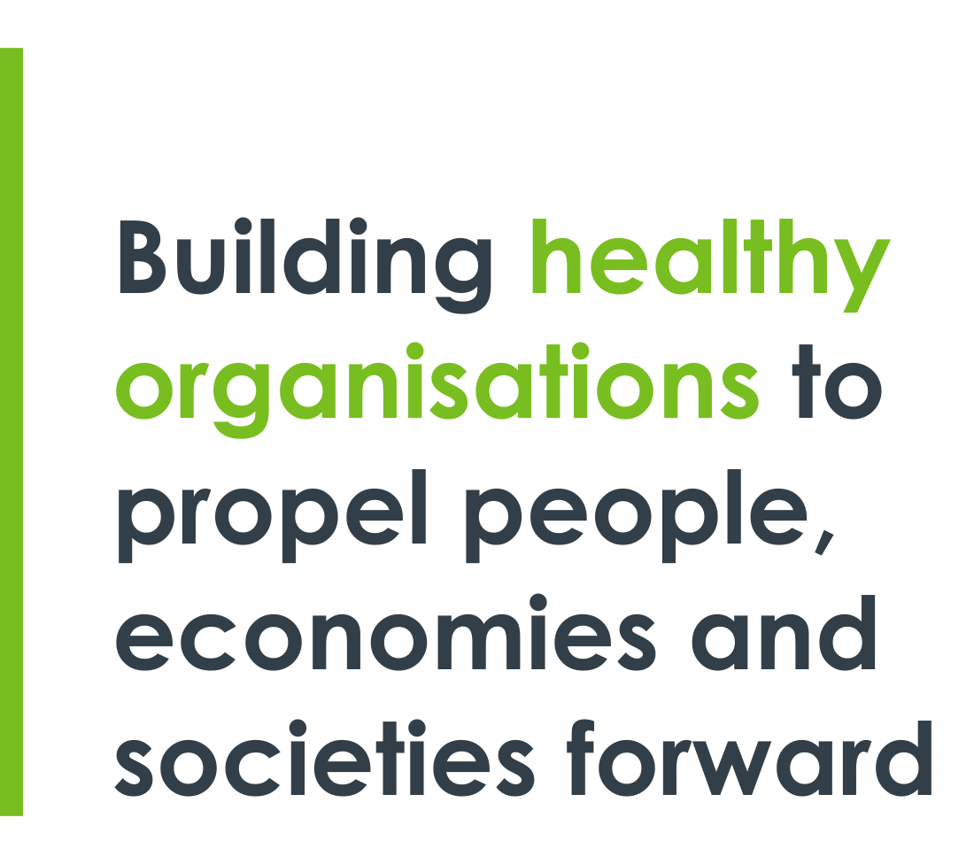 Understanding what we do, starts with why we exist. We’re here to build healthy organisations to propel people, economies and societies forward.